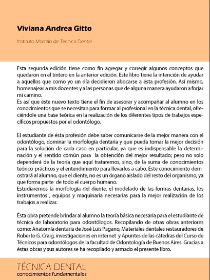 La idea al desarrollar este libro fue, poder a través de estas páginas, asesorar al alumno en los conocimientos que se necesitan para formarse como técnicos de laboratorios para odontólogos.